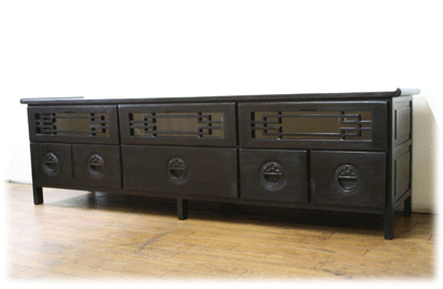アジアン家具格子文様取手TVラック【3扉+5引き出し】《W:165×D:40×H:48》 価格: 819,000円 レビュー評価: 0.0 レビュー数:0 『群馬県S様デザイン』格子文様取手TVラック【3扉+5引き出し】《W:165×D:40×H:48》【正面から】Wanonオリジナルデザインの『格子文様取手TVラック』に扉1つ引き出し2つを追加。テレビ周辺の物が全て納まるほど収納力抜群です♪【側面】横から見ても丁寧な仕上がりです。奥行き:40cm【裏面も総天然木】裏面でも一切手を抜かずに仕上げてあります。見えないからといって合板やMDFを使用することはありません!コード配線用の穴はお好きな位置に空けることが出来ます。【前開き】使い勝手を考えて上段のデッキ収納部分は前開きにしました。蝶番だけではなく補助金物付きなので安心です。【引き出し(大)詳細 Supported by 楽天ウェブサービス |